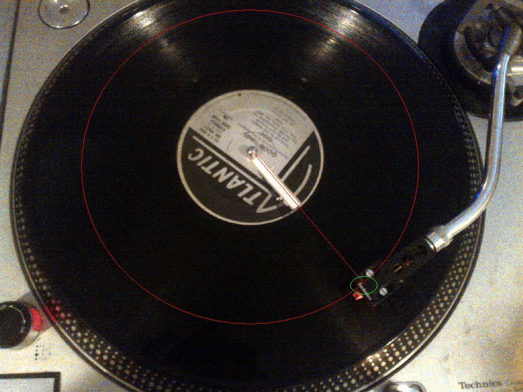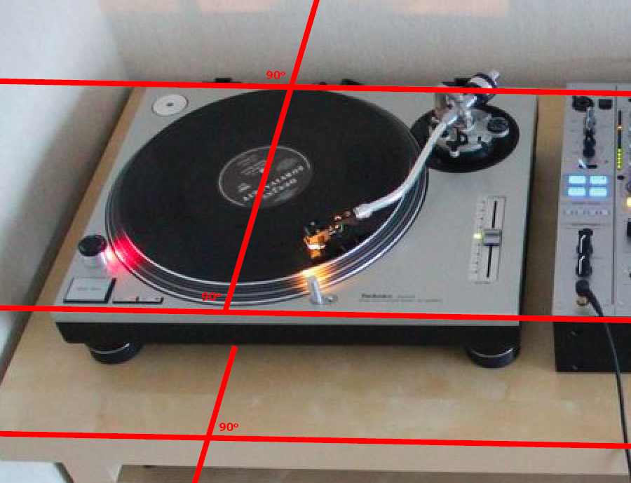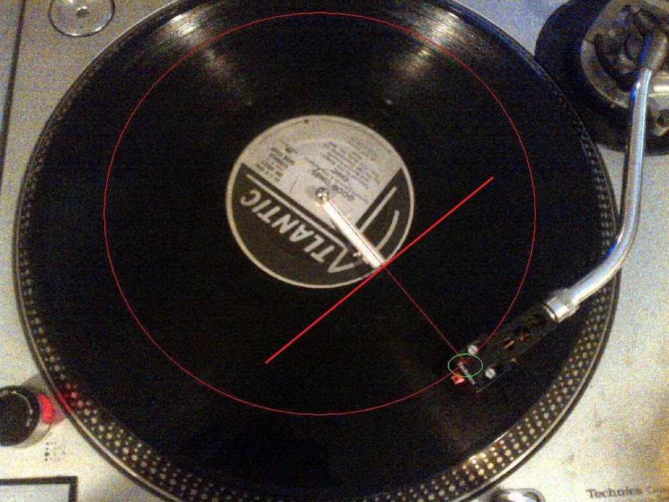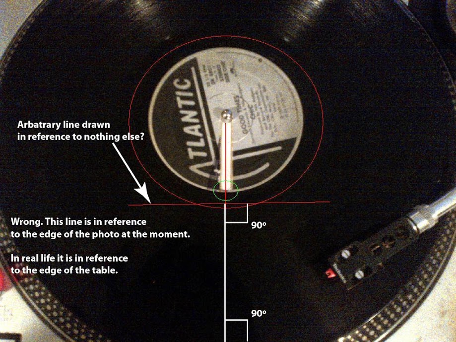 I'm not looking at the rectangle edging of the turntable, maybe YOU are but I know when my marker is exactly straight up and down. I don't have to look any farther than the position of the marker on the label to make that determination.Here is another super simple test of what you are saying.