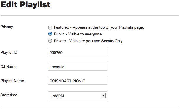 Once you have created your Serato Playlist, you can now edit the Playlist visibility, genre tags, images, titles and gig or radio show information to get it ready to share with your fans.