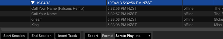 NOTE: Your computer will need to be connected to the internet in order to send the History session to Serato Playlists.