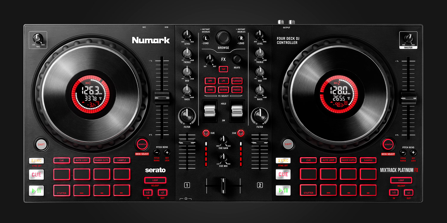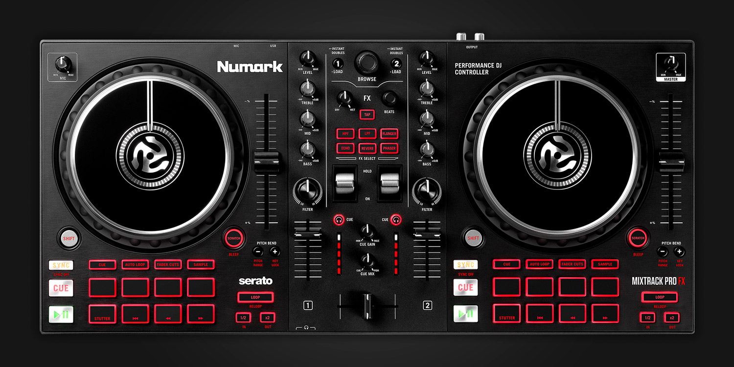 The Mixtrack Pro FX is similar to the Mixtrack Platinum FX, but in a 2-deck configuration. This replaces the jog wheel displays with a standard touch-capacitive counterpart. The perfect DJ controller for those looking to develop and build their DJ skills.