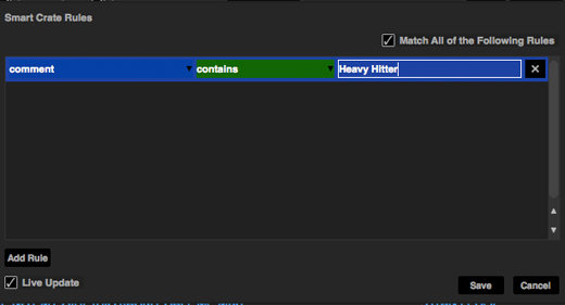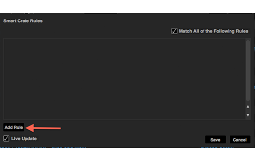 A popup window will open which allows you to add the rules to fill your smart crate. Click Add Rule to add a rule for the smart crate to match with.