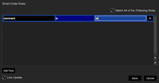 - This Smart Crate will pull in all the tracks in your library that contain the ⭐️ emoji in the comment field.