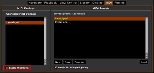 4. Make sure 'Enable MIDI Device' is checked and then select your new MIDI mapping from the available list. Click Load to load the mapping.